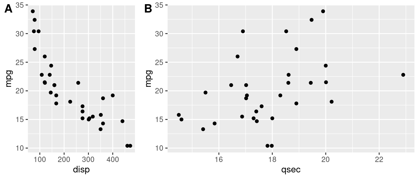 p2 <- ggplot(mtcars, aes(qsec, mpg)) +